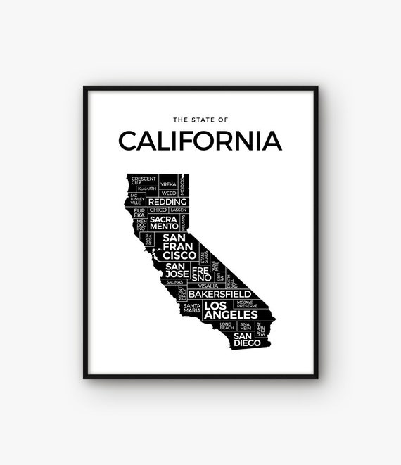 California Map Print Black and White California Wall Art Prints